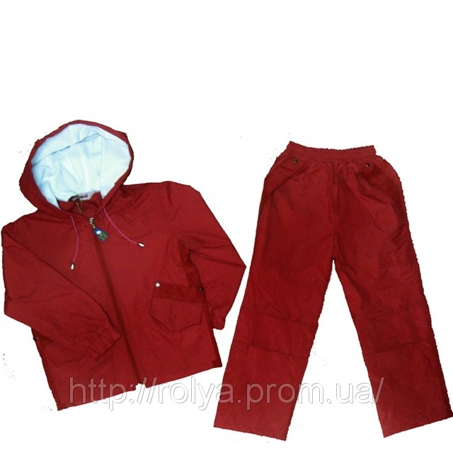 Костюм состоит из 2 предметов: кофта с капюшоном на молнии и штаны. Материал: плащевая ткань на х/б подкладке. Расцветка: зеленая и красная Размеры: 28 (104)- 220 грн |