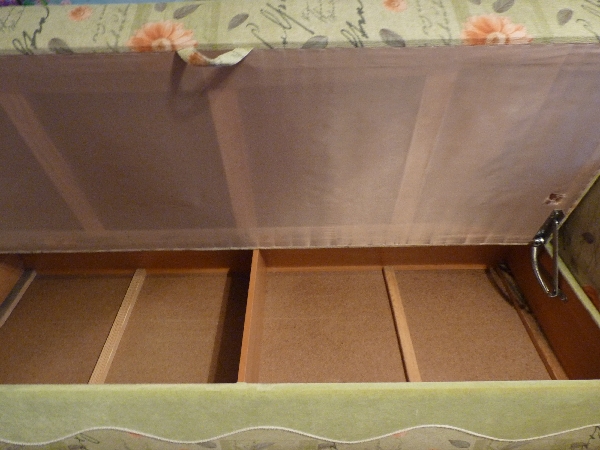 Односпальная кровать,сп. место 80*185 б/у пружинный блок, ниша для белья, спинка, цвет светло - зеленый |