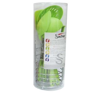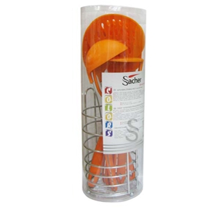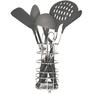 Комплектация: разливная ложка, ложка для соуса, картофелемялка, шумовка, лопатка, подставка.