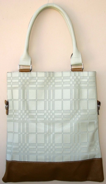 Размер: 38х40х2 Цвет: бежевый с коричневым Описание: Материал - кожезаменитель. Две средние нерегулируемые ручки. Высота ручке - 23см. Допольнительно имеется длинная регулируемая ручка. Сзади - прорезной карман на молнии. Внутри - тканевая подкладка, одно большое отделение. С одной стороны - карман на молнии,с другой стороны - места для сотового телефона и документов. |
