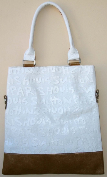 Размер: 38х40х2 Цвет: белый с коричневым Описание: Материал - кожезаменитель. Две средние нерегулируемые ручки. Высота ручке - 23см. Допольнительно имеется длинная регулируемая ручка. Сзади - прорезной карман на молнии. Внутри - тканевая подкладка, одно большое отделение. С одной стороны - карман на молнии,с другой стороны - места для сотового телефона и документов. |