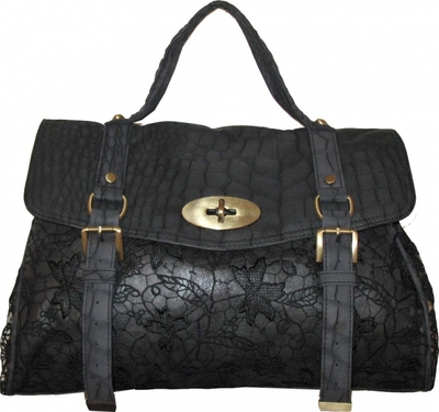 Размеры: 38х29х14 Цвет: черный Описание: Материал - комбинация кружева, гладкого кожезаменителя и кожезаменителя с тиснением под рептилию. Одна короткая нерегулируемая ручка. Высота ручки - 10см. Дополнительно имеется длинная регулируемая ручка. Сумка закрывается на молнию и при помощи клапана на поворотном замке. Внутри - шёлковая подкладка, три отделения. Среднее отделение закрывается на молнию. С одной стороны - карман на молнии, с другой стороны - места для сотового телефона и документов. |