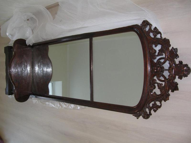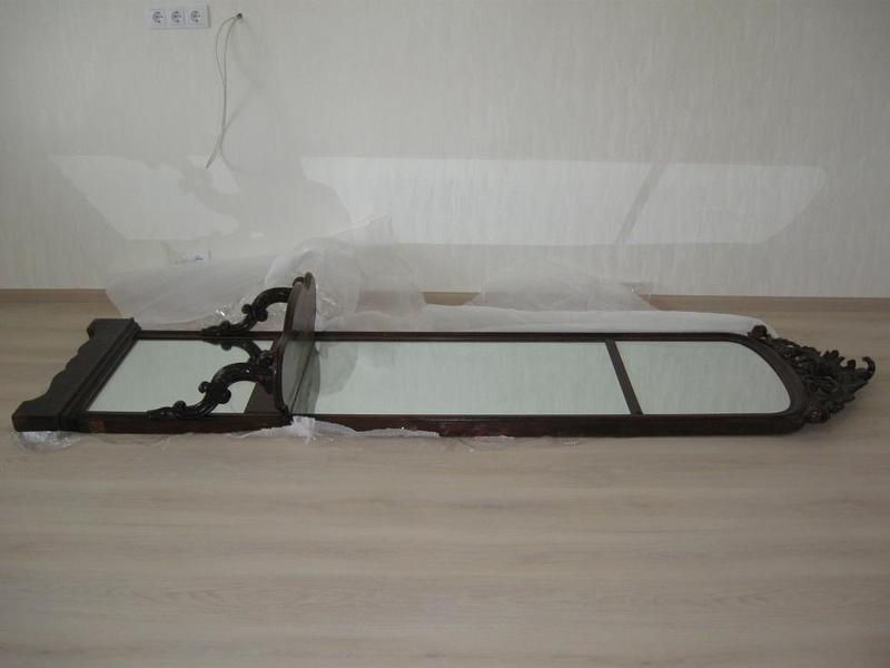 Продаю антикварное зеркало 1890 -1900 г.г. выпуска. Высота 2,85 м. Все части оригинальные, ничего не реставрировалось. На короне есть небольшая отколотая часть. |