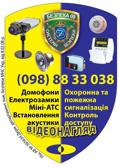 Монтаж(установка) систем безопасности: -установка спутникового телевидения - охранной сигнализации - пожарной сигнализации - тревожные сигнализации (тревожные кнопки) - видеонаблюдения - контроль доступа - домофоны - мини АТС А также :интернет, елекро монтаж, акустические системы КОНТАКТ 098-88-33-038 / (0472)38-62-48 |