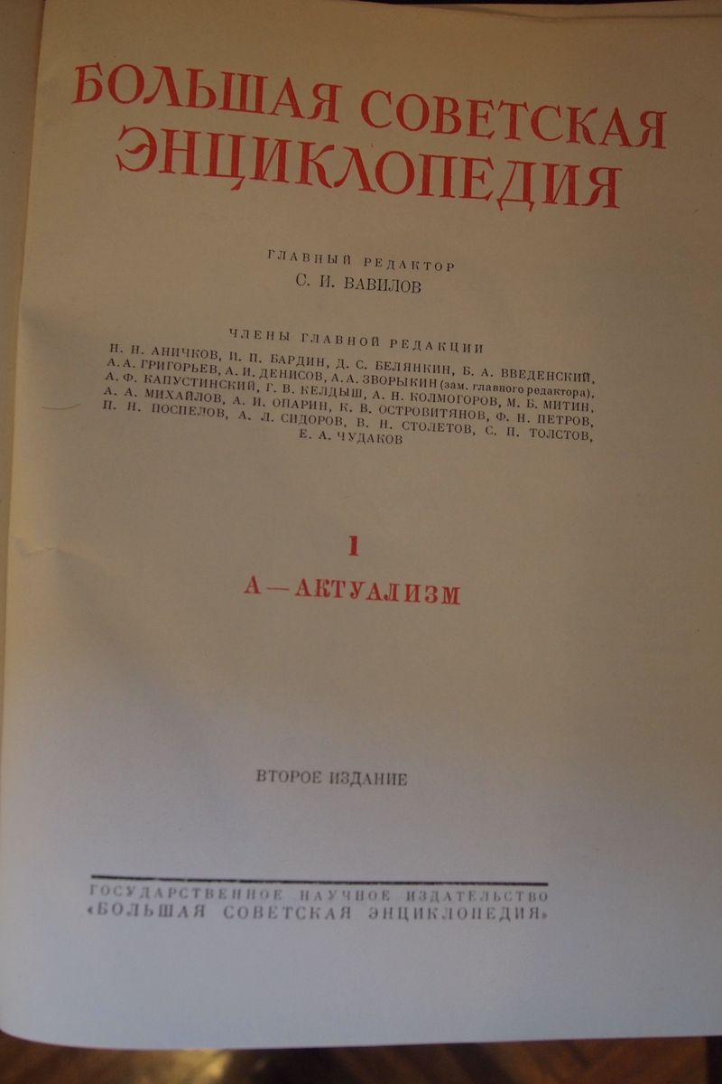 Второе издание (1949—1958) насчитывало 49 томов, том 50 «СССР», дополнительный том 51 и том 52 «Алфавитный указатель» в двух книгах (1960). Есть статья про Берию. Имеется с 1 по 51 том. Состояние хорошее. |