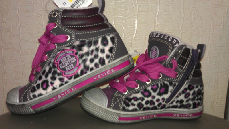Продам новые,с этикетками, стильные туфли-кеды для девочки.Размер 27.Были куплены в Австрии-качество европейское.Цвет-сочетание розового леопарда с бордо.Материал-сочетание нубука с плюшем.Сезон весна,лето,осень.Цена 320 грн. |