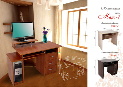 Стол компьютерный "Марс-1", материал ДСП.Различные варианты цветов: дуб молочный, бук, вишня, орех франц.светлый, орех экко, орех темный. яблоня локарно, махагонь, венге магия.
