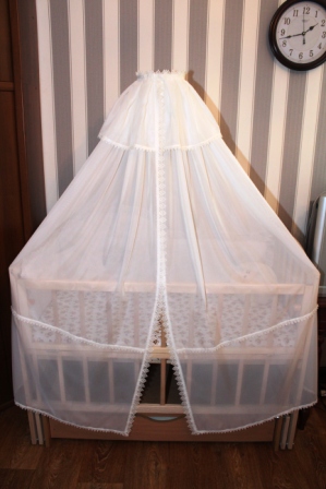 У вас есть возможность украсить кроватку вашей крохи полезным и красивым балдахином и бортиками: создает чувство защищенности, образуя уютный закрытый уголок (самые маленькие будут чувствовать себя в них уютно, как у мамы в животике, а детки постарше почувствуют себя как в сказочном домике); служит дополнительной защитой от света и постороннего шума, а значит - помогает заснуть; вопреки расхожему мнению не просто собирает пыль, а препятствует попаданию ее на ребенка (естественно периодически нужно стирать, как и игрушки да и весь текстиль в детской комнате); защищает от сквозняков, в том числе создаваемых кондиционером; защищает от насекомых и шерсти домашних животных; развивает эстетический вкус ребенка да и окружающих будет радовать стильный предмет интерьера.