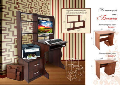 Стол компьютерный "Бостон". материал ДСП. Различные варианты цветов:дуб молочный,бук,вишня,орех франц.светлый,орех экко,орех темный.яблоня локарно,махагонь,венге магия.