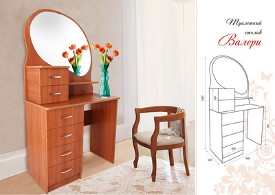 Туалетный столик "Валери" материал ДСП. Различные варианты цветов:дуб молочный,бук,вишня,орех франц.светлый,орех экко,орех темный.яблоня локарно,махагонь,венге магия.