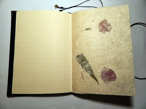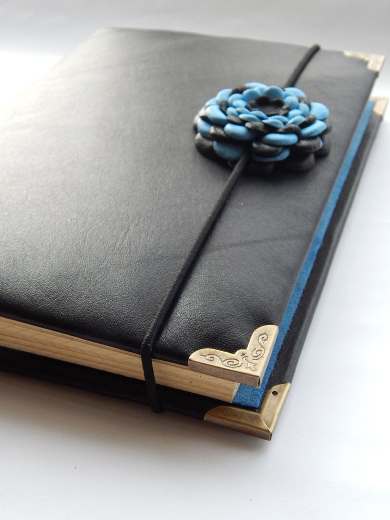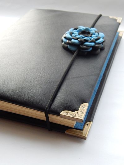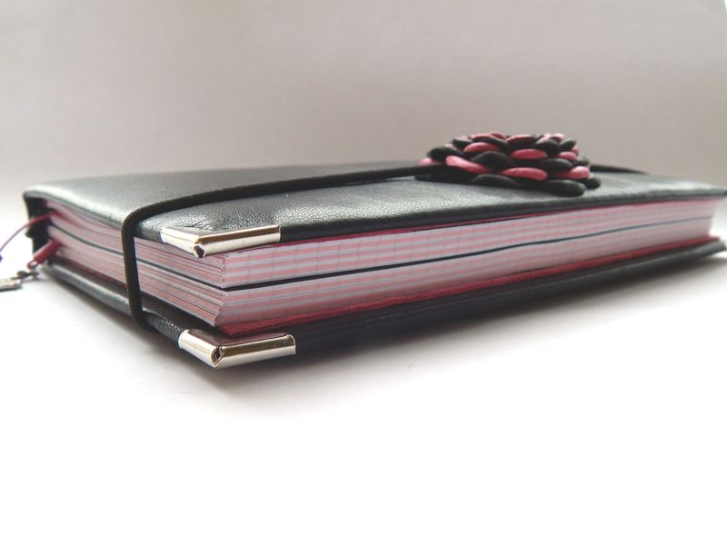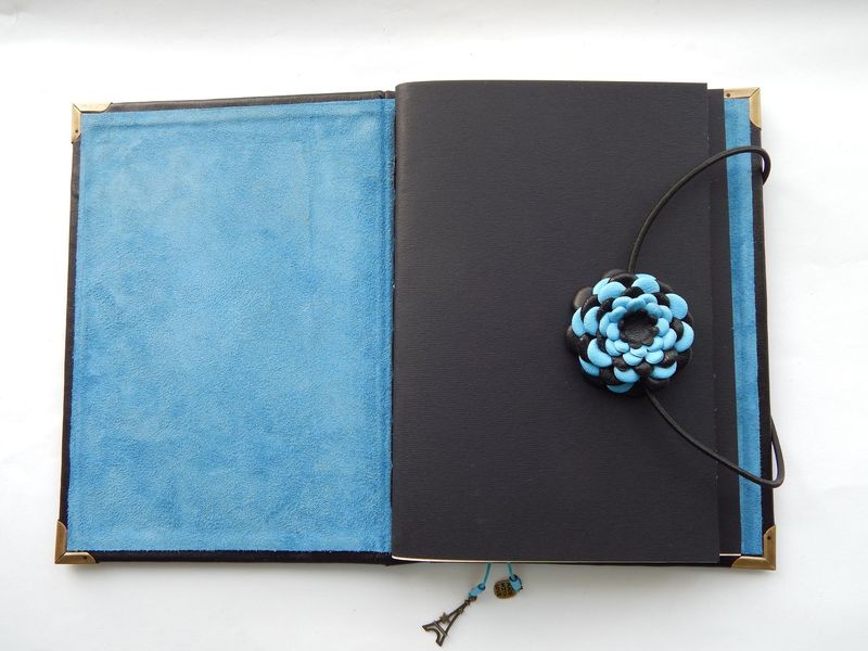 Блокнот состоит из двух блоков-тетрадей, по 50-60 листов в каждой. Бумага плотностью 80 г/м2. Обложка тетради из качественного дизайнерского картона. В качестве «разделителей» может использоваться бумага ручной работы. После списания её легко заменить на новую, а обложка останется прежней.