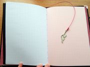 Каждая записная книжка имеет две закладки из вощёного шнура, на конце которых прикреплена подвеска, подходящая по цвету.