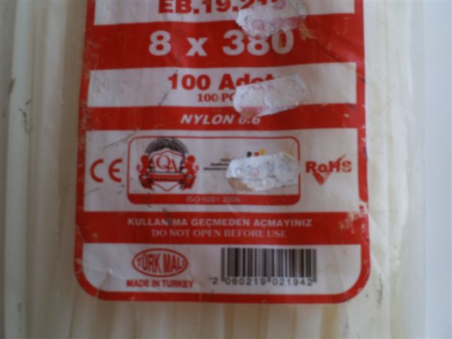 Стяжные хомуты пластиковые(нейлон) белые , размер - 380*8 мм. В упаковке 100 шт. Производитель Турция. |