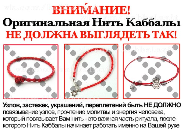 Повязывается красная нить на левую руку, так как считается, что негативная энергия входит в нас именно слева. Левая рука получает – правая отдаёт, а красная нить является препятствием для негатива. Кстати, как известно, красный цвет – цвет опасности, это тоже имеет значение. Каббалисты считают, что для того чтобы нить начала действовать, она должна быть повязана определённым образом: завязывать её должен человек, с которым у вас крепкая взаимная любовь и которому вы полностью доверяете, – обычно это родители, бабушки, дедушки или другие близкие вам люди. Пока вам будут повязывать нить, вы должны читать молитву или просто просить сострадания, доброты и защиты от сглаза.
