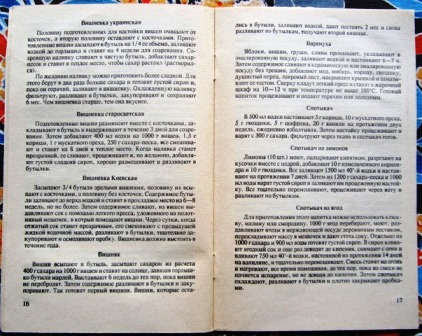 =Продам книжечку:Домашние вина, наливки, настойки и коктейли =45 страниц. =В этой книге описано как приготовить в домашних условиях вина и различных наливок, настоек и коктейлей из яблок, винограда, слив, вишен, черной смородины и других ягод и фруктов. Приведены простейшие способы получения домашних напитков хорошего качества. Рассказано, к каким блюдам и как следует подавать тот или иной напиток. =Оплата: Предоплата на карточку Приват банка. =Пересылка: Любым удобным перевозчиком за счет покупателя. ( Укр.Почта + 8грн.) =Срочные вопросы можно уточнить (согласовать) по тел.с 9.00 до 18.00. =Пишите, звоните, договоримся. |