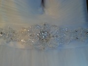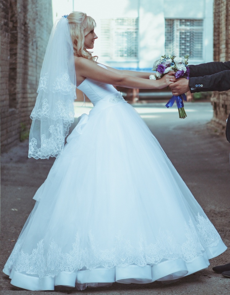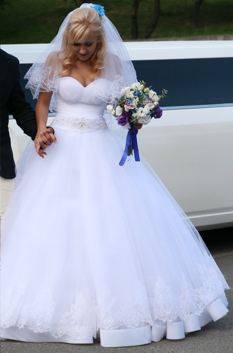 Белое свадебное платье от MAXIMA в идеальном состояние, одевалось один раз на свадьбу. После индивидуальной VIP химчистки. Размер 44,на рост 165-175 (без каблука), пышная юбка на верхнем слое внизу кружева, корсет идеально подчеркнет вашу грудь, зашнуровуется атласным шнурочком, пояс обшит красивым узором из бисера. Кольца идут вместе с платьем. |