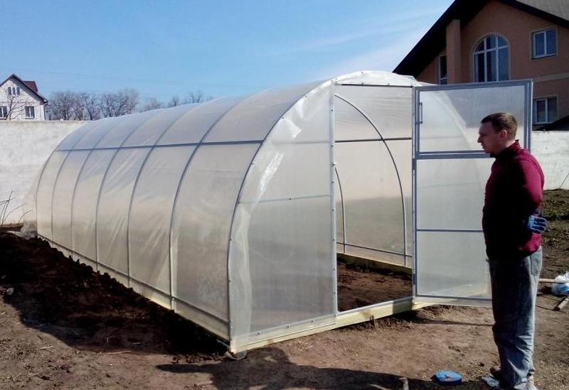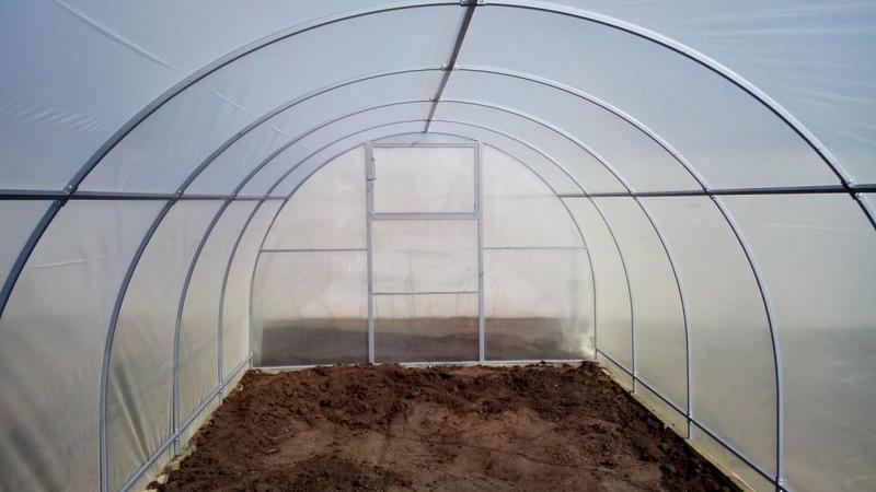 Теплица оснащена дверью с форточкой с одного торца и форточкой с другого.