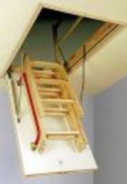Чердачная лестница LWK Komfort изготовлена из сосны высшего качества и укомплектована утепленной крышкой люка (толщина крышки с утеплителем — 36 мм), облицованной ДВП белого цвета, что делает ее практически незаметной при установке в светлом или белом потолке. Состоит из 3-х или 4-х секций.