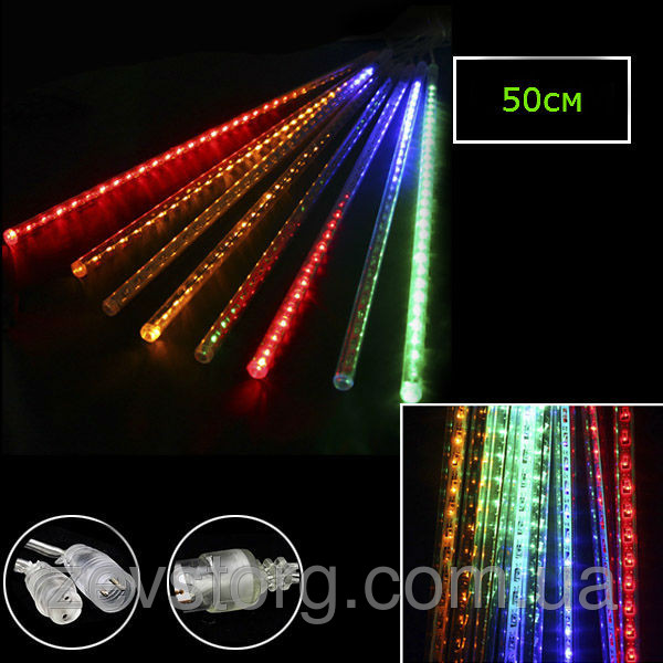 Гирлянда светодиодная тающие сосульки LED. Гирлянда уличная (outdoor) представляет собой гибкий шнур питания (базовый), на котором расположены выполненные из пластика прозрачные трубки. Поочередное свечения диодов создают эффект бегущей капли, стекающую по тающей сосульке.