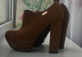 Ботільйони нові,приємного світло коричневого кольору,жодного разу на вулицю не вдягалися( виявився зависоким каблук для мене)))! Дуже гарно дивляться на нозі! Висота каблука 12,5 см Розмір 39,але насправді 38! |