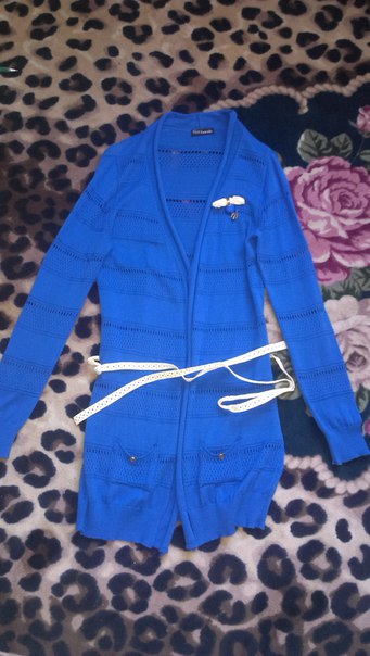 Кардиган в хорошем состоянии, размер S-M, красивого синего цвета, очень красиво смотриться как с платьем, так и с джинсами, не очень теплый. Длина по спине: 80 см Пересылаю, любым удобным Вам способом, после 100% предоплаты на карту Приват Банка. Возврата нет! |
