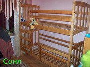 Детская двухъярусная кровать "Соня". Изготавливается из ольхи, липы. Покрытие - лак (бук, орех, каштан, яблоня, ольха). Кровать трансформер (переоборудывается в две односпальные кровати). Правого и левого исполнения. При изготовлении дополнительной защиты, стоимость кровати увеличивается на 100 грн. Время изготовления 2-3 недели, возможно наличие готового изделия. Звонить с 8 до 22 ежедневно. |
