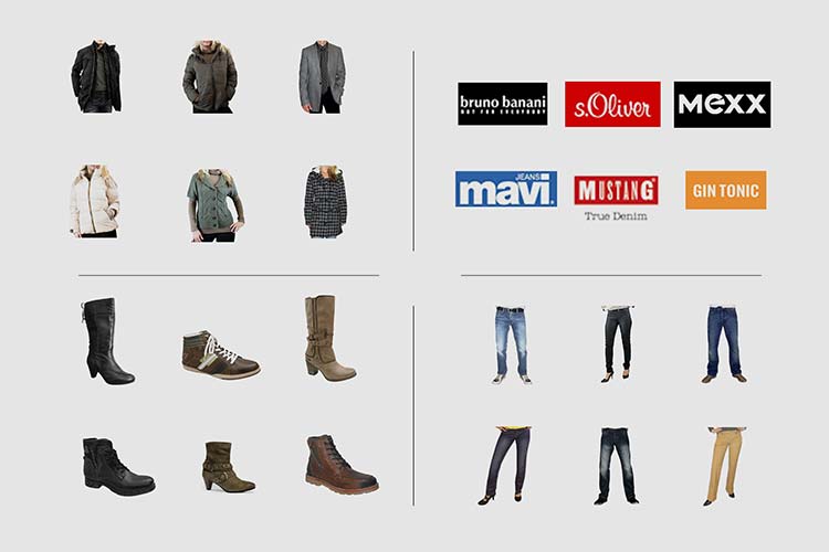 Более половины товаров от таких марок как MUSTANG и Gin Tonic, более 450 наименований от MEXX, более 250 s.Oliver, а также других марок таких как Daniel Hechter, обувь Bugatti, Bruno Banani, Mavi Jeans и других.