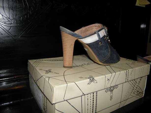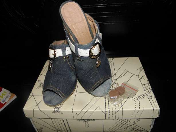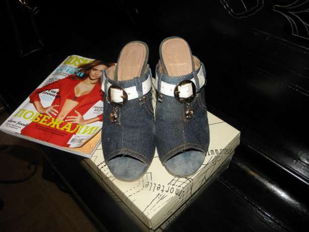 Джинсовые сабо. Модные,стильные, удобные. Как под укороченные брюки, джинсы так и под юбку. В хорошем состоянии. Сделана профилактика, набойки (есть запасные новые набойки).Высота каблука 7 см. |