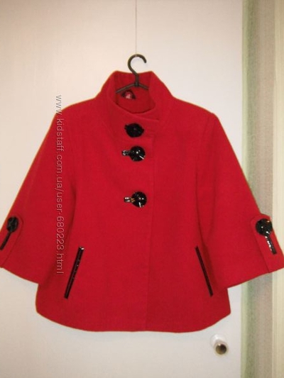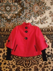 Кашемировое женское пальто (полу пальто) б/у. Цвет: красный. Сезон: осень-весна (пальто без утеплителя). Фасон: небольшая трапеция; рукава 3/4 плюс рукава-довязы. Есть два кармана. Пальто застегивается на три пуговицы. Дефекты: внутри на подкладке есть затяжки. Размер: 48. Ширина плеч 42см, длина рукава 44,5см, длина рукава-довяза 29см, полу обхват подмышками 53см, полу обхват в районе талии 55см, полу обхват в самом низу 60см, длина пальто 60см. |
