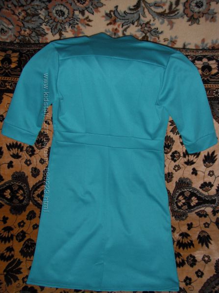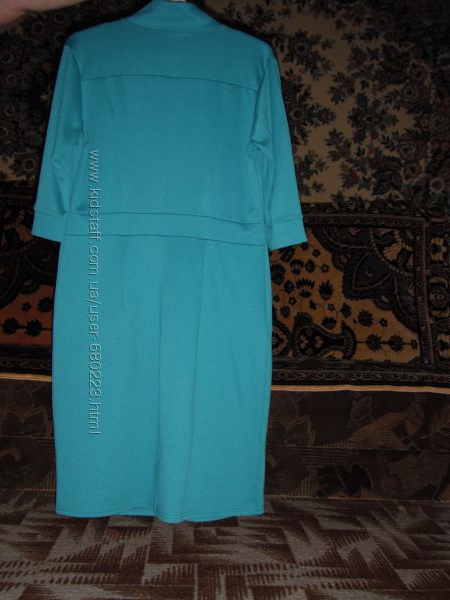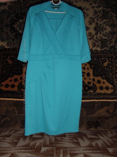 Женское платье б/у, но в идеальном состоянии, носили очень мало. Ткань: трикотаж. Цвет: бирюзовый (на фото получился голубой, но в реальности цвет бирюзовый). Строгий, деловой фасон: рукав 3/4, воротник - стоечка, разрез в платье с заду. Размер: 50. Ширина плеч 42см, длина рукава 37см, полу обхват подмышками 48см, полу обхват талии 43см, полу обхват бедер 49,5см, длина платья 95см. |