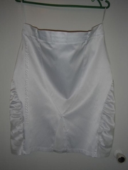 Женская летняя юбка из хлопка б/у. Производитель: Megissa Турция. Состав ткани: 97% cotton, 3% elastan. Цвет: белый. Изначально в юбке разрез с заду был очень маленьким, его переделали на разрез побольше. Размер: на бирке указан 40 (это наш 46). Полу обхват талии 42см, полу обхват бедер 48,5см, общая длина юбки 55,5см, длина от линии талии 51,5см, длина разреза (с заду) 17,5см. |