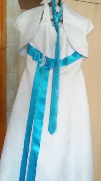 Продаю свадебное платье в хорошем состоянии. Размер 44-46. На рост 170 см с каблуком - идеально. Цена - 3000 грн + торг. В комплект входит: платье, кольца, болеро с короткими рукавами и мужской галстук в цвет ленте на платье. Обращайтесь 0931468860 |