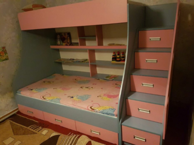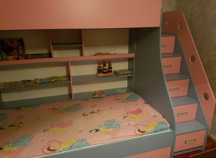Шикарная двухъярусная кроватка для ваших детей! Подойдёт как для девочек, так и для мальчиков. В идеальном состоянии. На ней спал один ребёнок пару месяцев - продаём, так как переехали и нет возможности забрать с собой. Функциональная кровать, много полочек, внизу три выдвижных ящика, по ступенькам - пять ящиков с доводчиками. Продаём вместе с матрацами. По всем вопросам, пожалуйста, звоните по номеру. Кровать делали на заказ, по итогу заплатили 13000, продаю с хорошей скидкой. Срочно нужны деньги. Торг уместен. |
