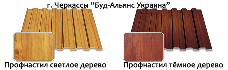 Профнастил под дерево, который Вы можете приобрести в Черкассах, представлен в двух вариантах, это – профнастил под светлое дерево и профнастил под тёмное дерево.