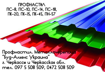 Профнастил ПС-8 стеновой. Металлочерепица. Черкассы "Буд-Альянс Украин - Отделочные материалы