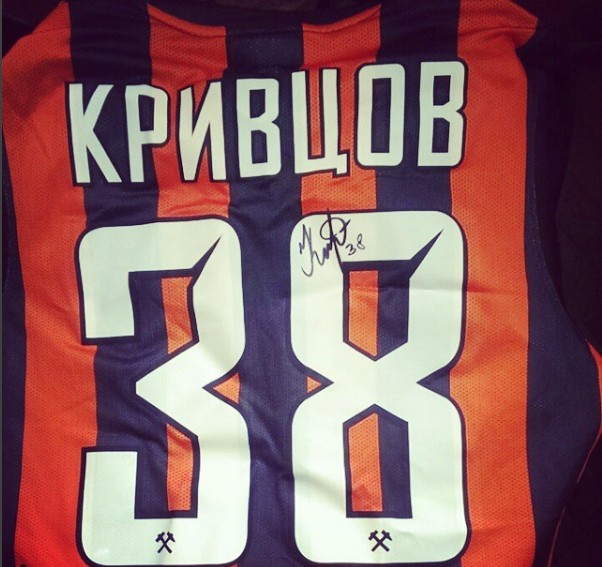 Оригинальная футболка ФК Шахтер с автографом защитника клуба Сергея Кривцова Размер - L Футболка абсолютно новая |