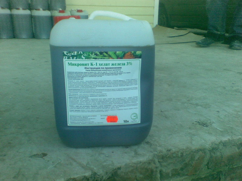 Способ применения: Внекорневая подкормка 0,1% раствором (с прилипателем); 1 литр хелата железа на 1000 литров воды.