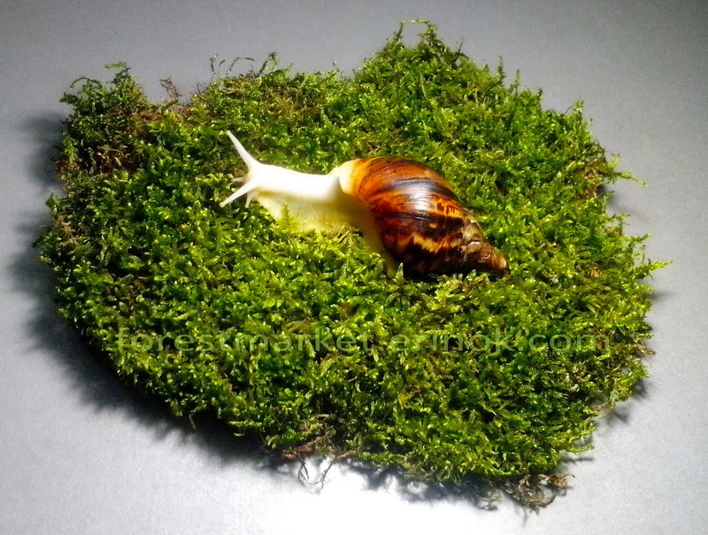 Мох хорошо впитывает и удерживает влагу. Обладает бактерицидным свойством. Отлично подходит для обустройства террариумов, контейнеров для содержания улиток Ахатин. (поддерживает в контейнере необходимый уровень влажности, а так же служит кормом для улиток).