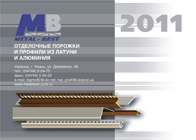 ТОВ "Мост-Бест" производитель латунных и алюминиевых профилей и порогов предлагает оптом и в розницу: анодированные (матовые и полированные), ламинированные (под структуру дерева) алюминиевые профиля, а также профиля с латуни для напольных покрытий и плиточной группы. |